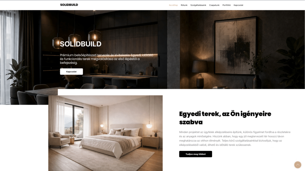 Professzionális megjelenésű weboldal belsőépítészeti és kivitelezéssel foglalkozó vállalkozásoknak.